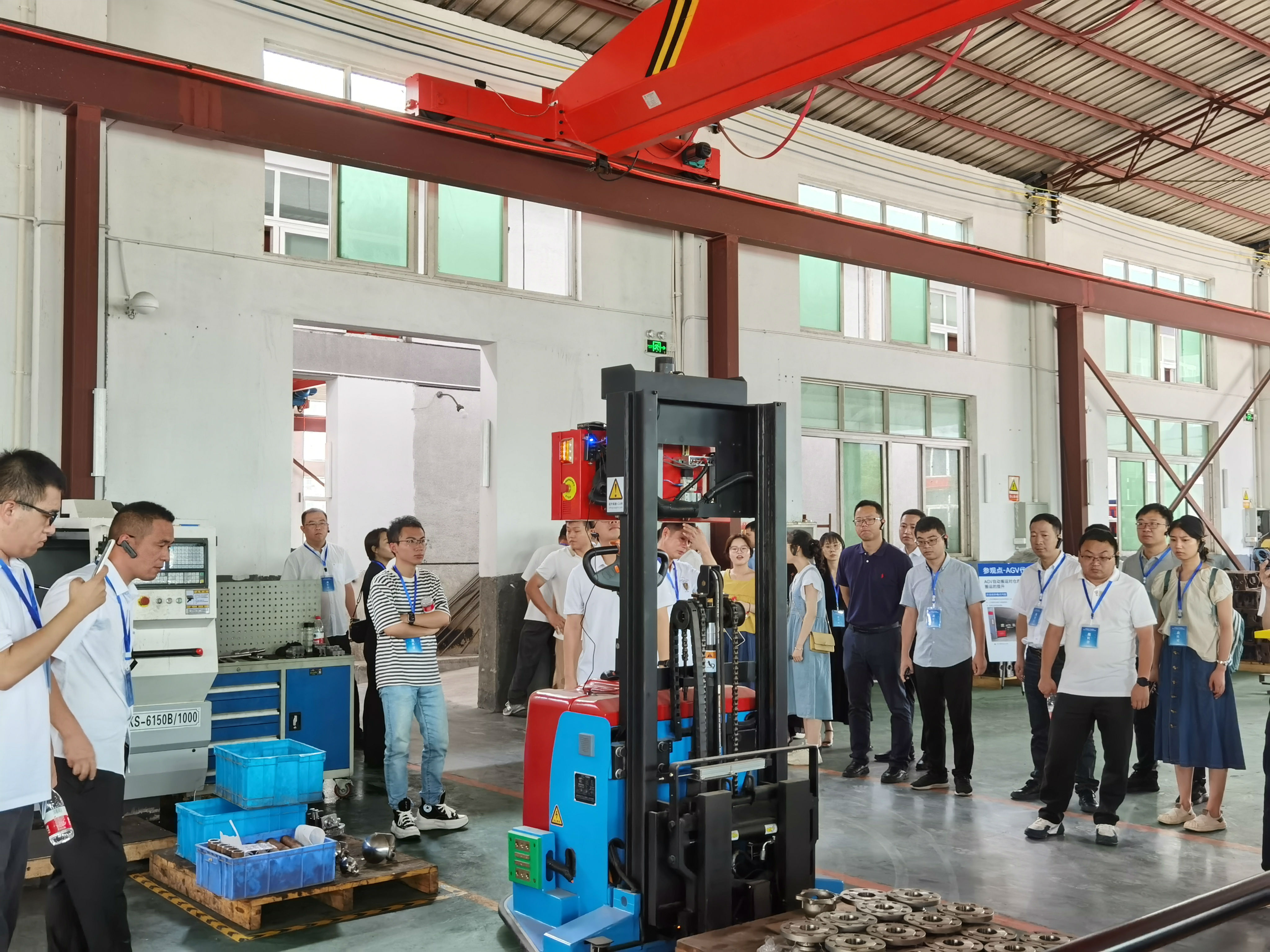 AGV自動堆垛機穿行在車間中,將裝有500千克重量的閥體自3米多高的貨架上取出,緩緩放上指定地點。手機掃描貨物上的條碼,手指輕點,貨物出庫完成。