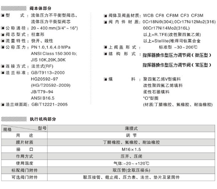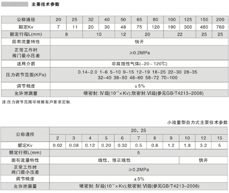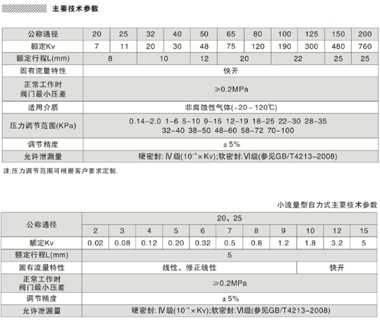 ◆自力式帶指揮器型壓力調節閥 主要技術參數: