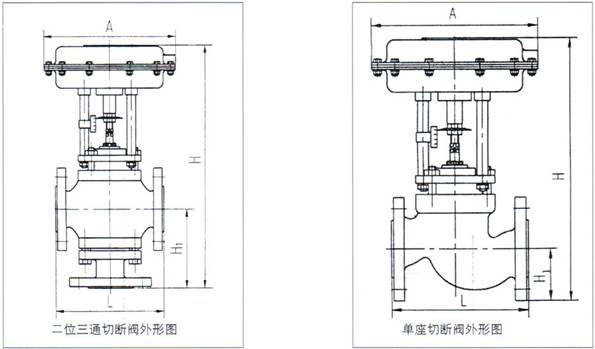 ﹡切斷閥采用多彈簧執行機構與調節機構用三根立柱相連,整個高度可減小約30%、重量可減輕約30%。