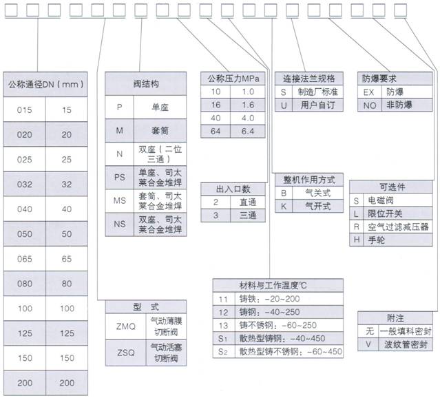 ■ ZMQ、ZSQ氣動薄膜、活塞式切斷閥型號