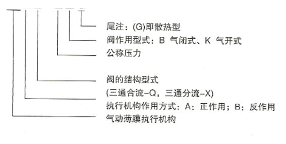 二、ZMAQ(X)氣動三通調(diào)節(jié)閥型號意義