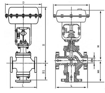 氣動三通調(diào)節(jié)閥有三通合流及三通分流兩種。公稱壓力有PN16、40、64;公稱通徑范圍DN25—300。適用流體溫度由-60℃至+450℃。泄漏量標(biāo)準(zhǔn)為Ⅳ級。流量特性有直線、拋物線兩種。氣動三通調(diào)節(jié)閥需要接通氣源才可以工作。有些施工現(xiàn)場無氣源可以改選同類型的電動三通調(diào)節(jié)閥使用。