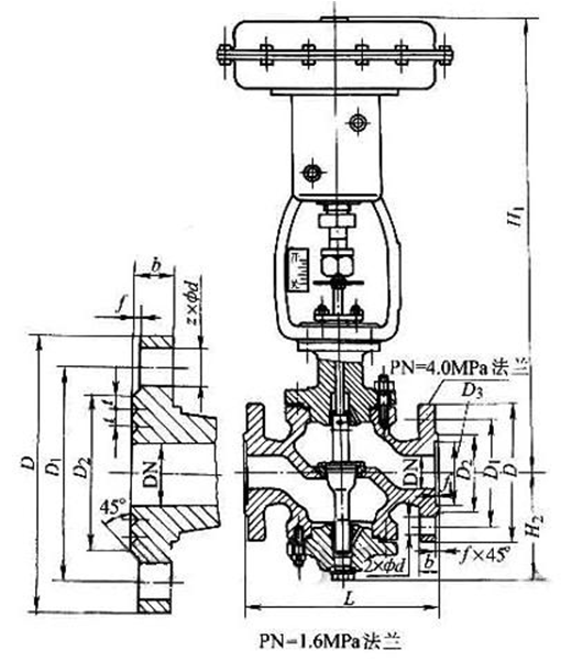 六、ZJHN氣動雙座調節閥外形尺寸